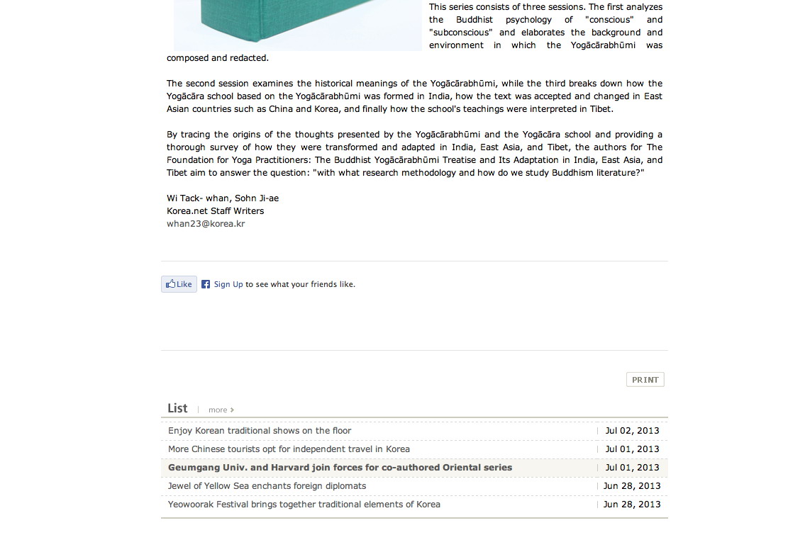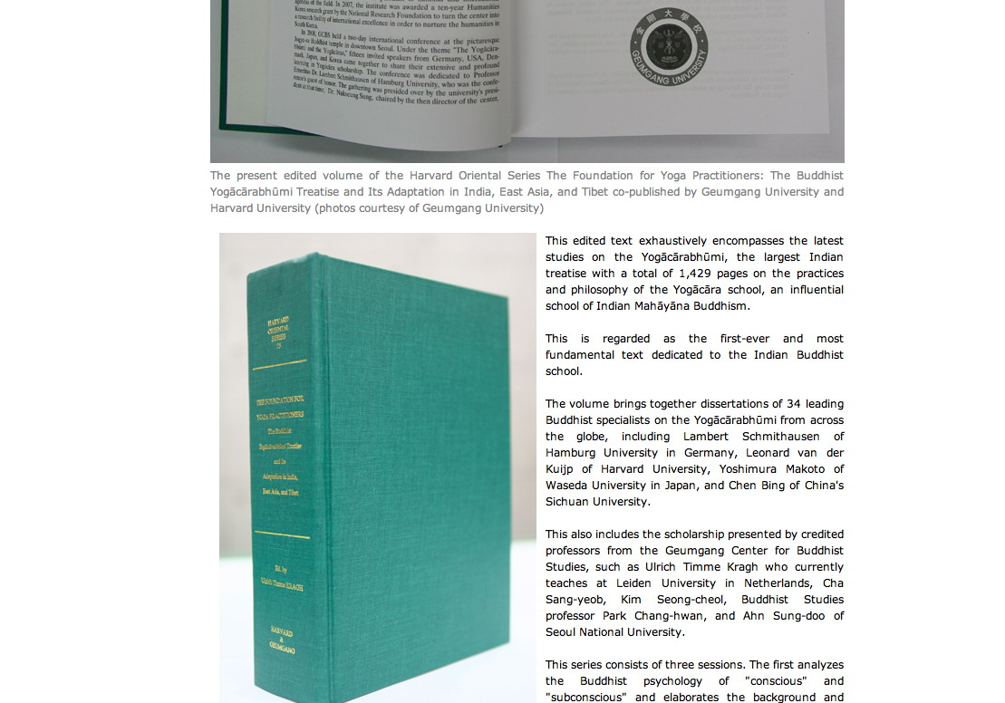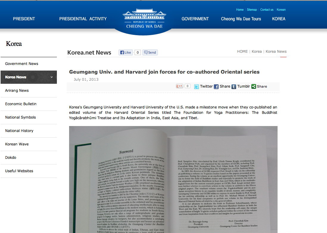 | [청와대 영문 홈페이지] 금강대-하버드대 공동 출판물 소개 캡쳐 화면 | |||